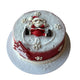 Moist vanilla sponge layered with rich vanilla cream and decorated with fresh strawberries and festive Christmas ornaments
